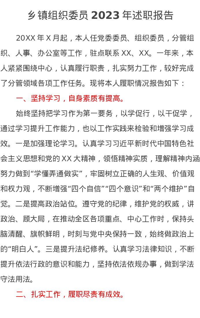 乡镇组织委员2023年述职报告