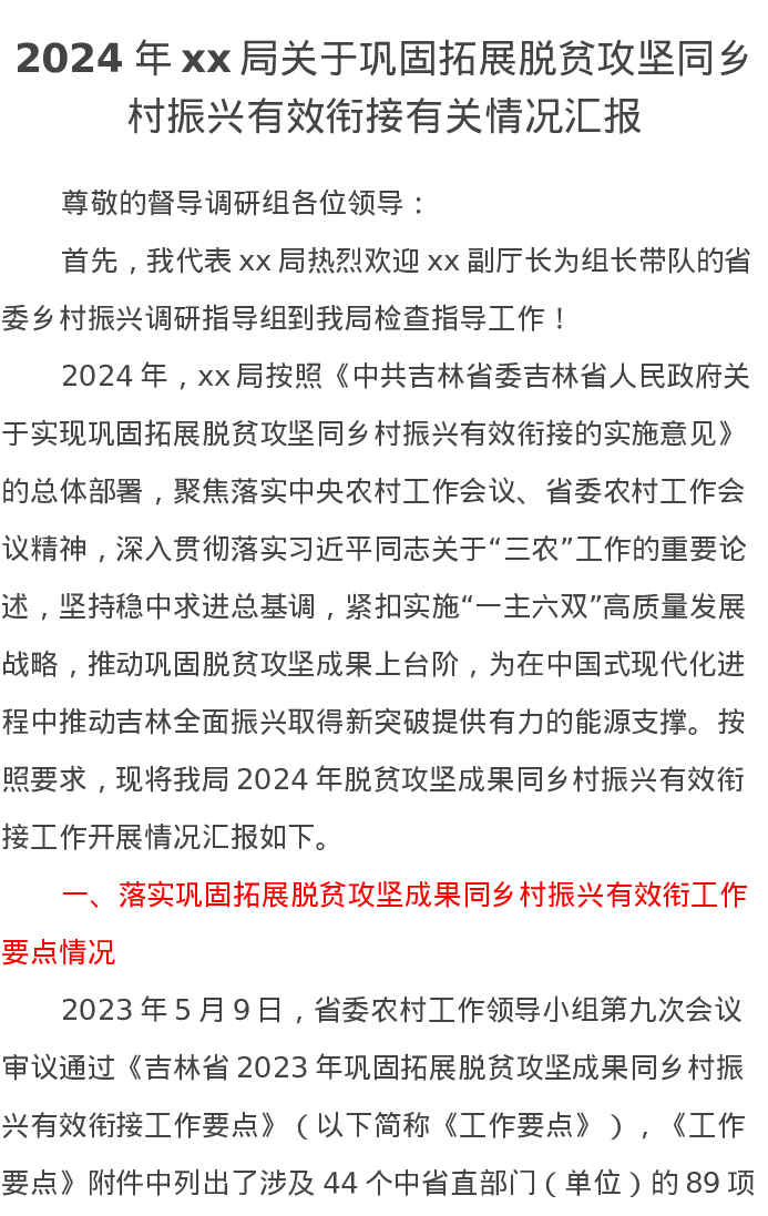2024年xx局关于巩固拓展脱贫攻坚同乡村振兴有效衔接有关情况汇报