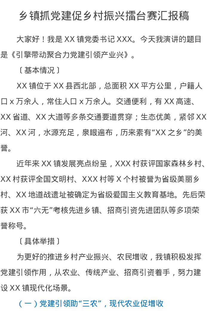 乡镇抓党建促乡村振兴擂台赛汇报稿