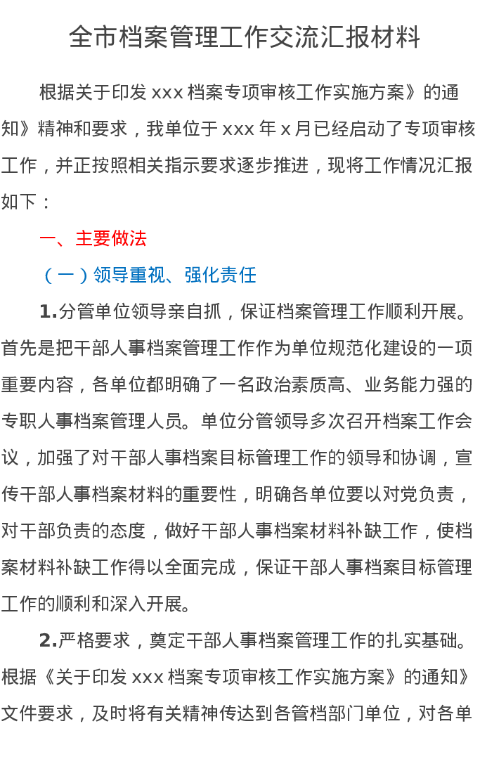 全市档案管理工作交流汇报材料