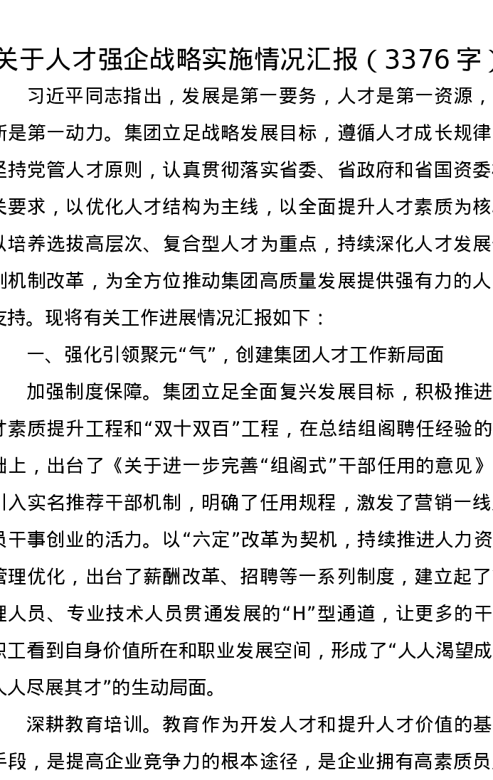 关于人才强企战略实施情况汇报