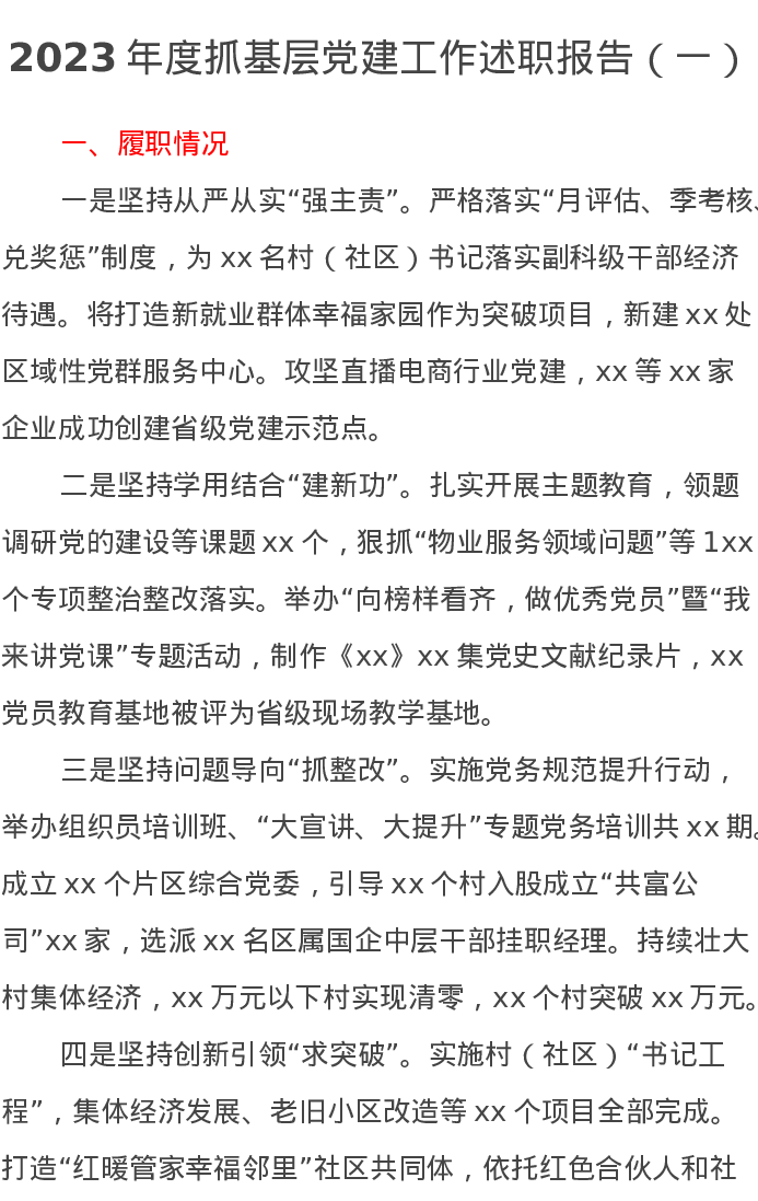 2023年度抓基层党建工作述职报告2篇