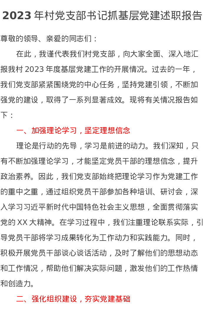 2023年村党支部书记抓基层党建述职报告