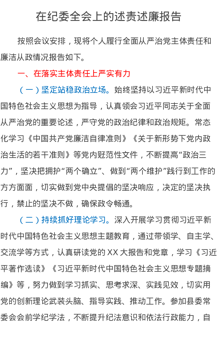 在纪委全会上的述责述廉报告(县委常委、办公室主任)