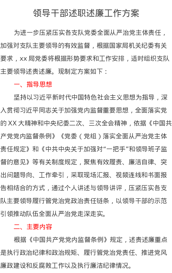领导干部述职述廉工作方案