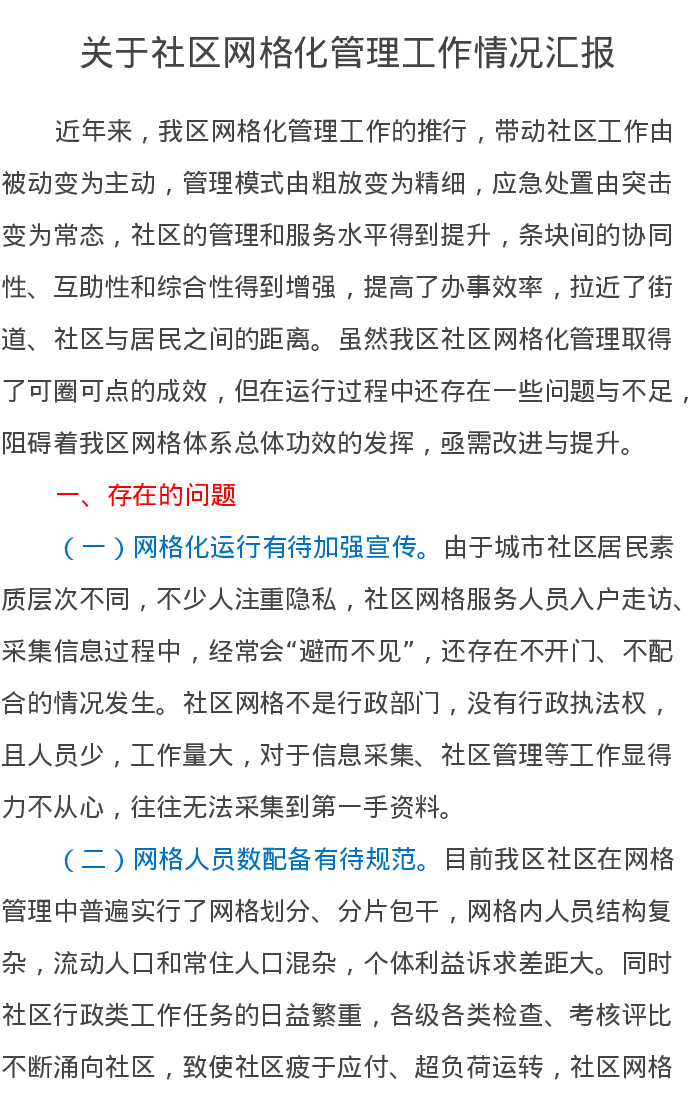 关于社区网格化管理工作情况汇报