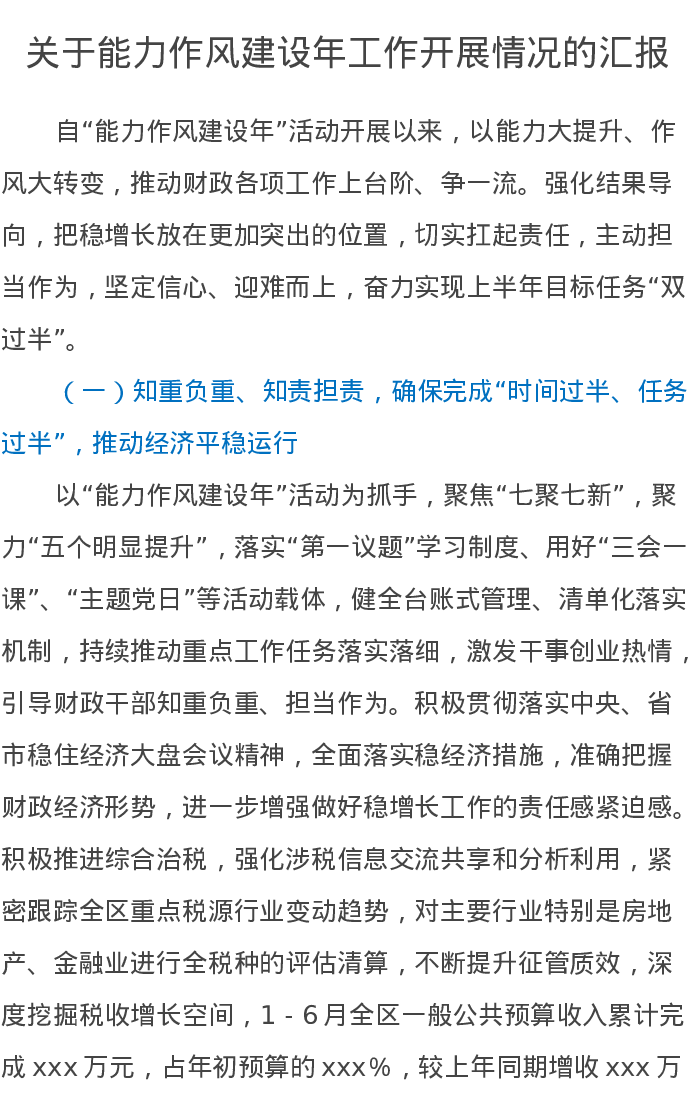 关于能力作风建设年工作开展情况的汇报