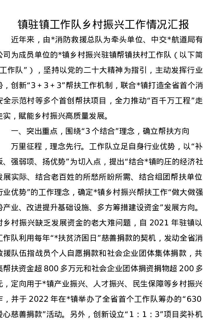 镇驻镇工作队乡村振兴工作情况汇报