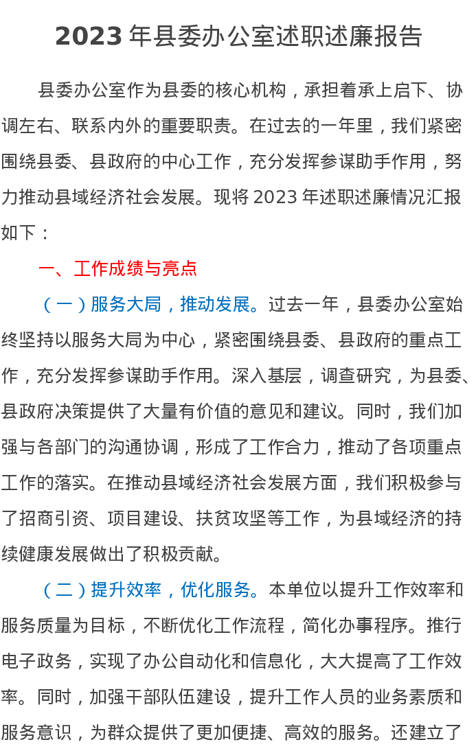 2023年县委办公室述职述廉报告
