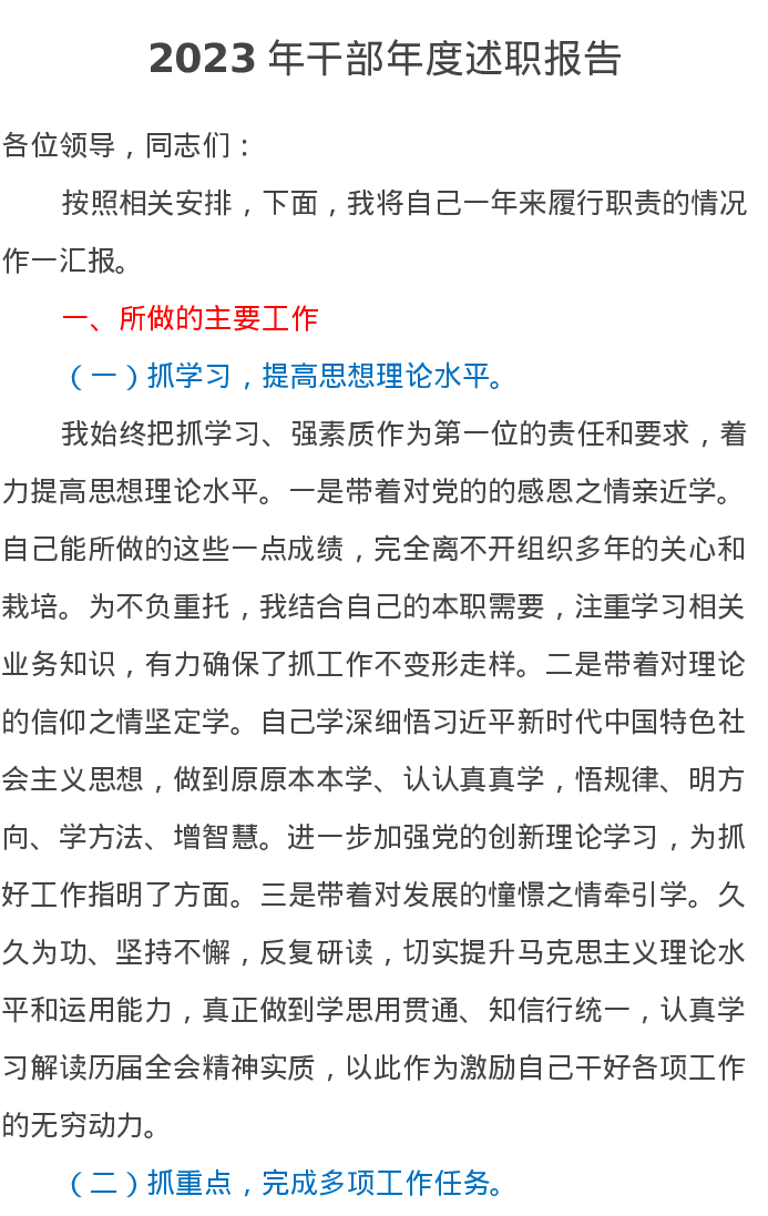 2023年干部年度述职报告