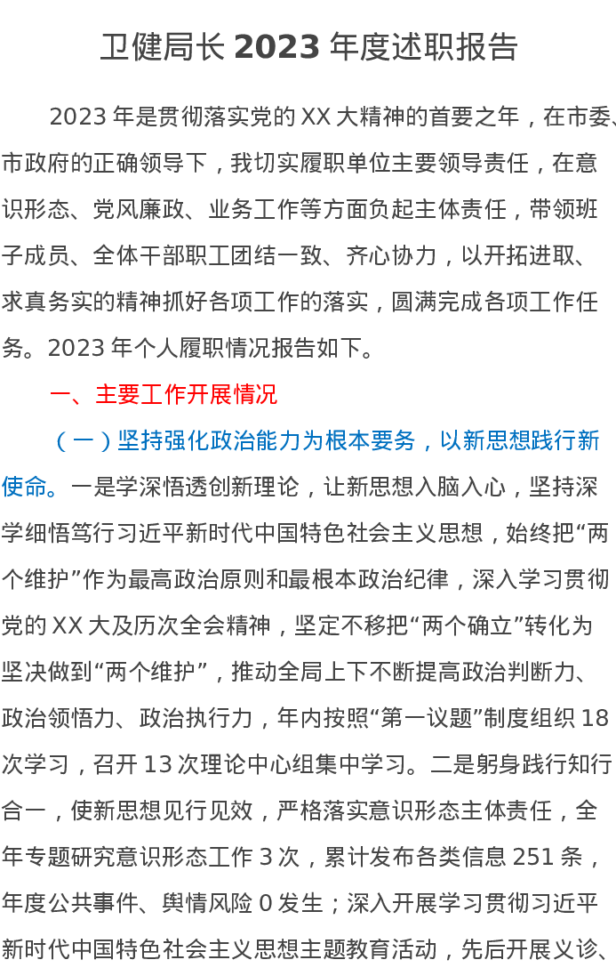 卫健局长2023年度述职报告
