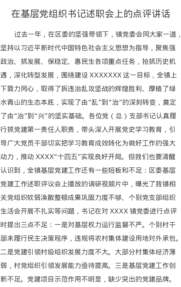 在基层党组织书记述职会上的点评讲话