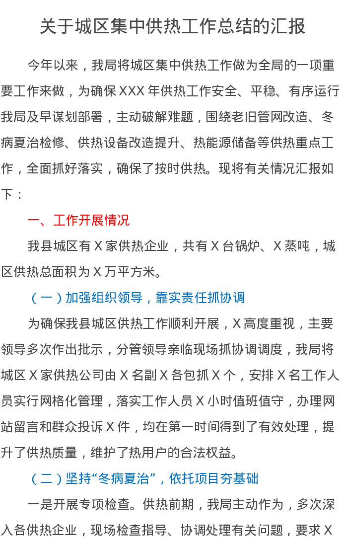 关于城区集中供热工作总结的汇报