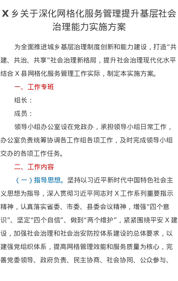 X乡关于深化网格化服务管理提升基层社会治理能力实施方案