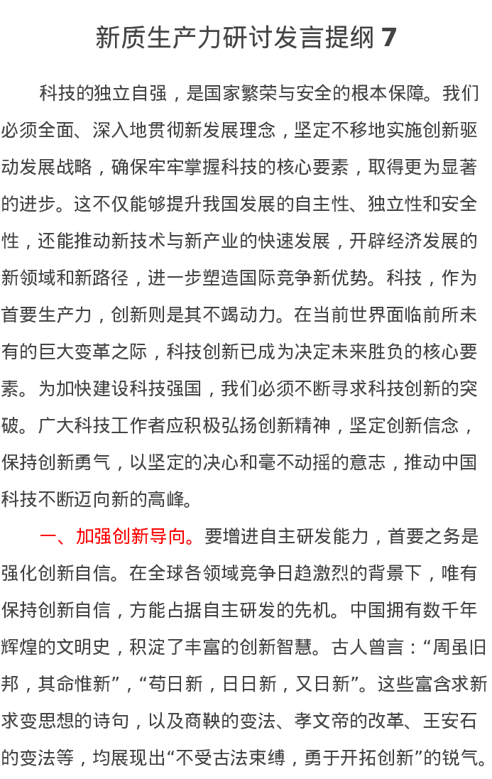 新质生产力研讨发言提纲7