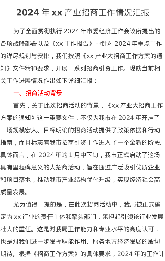 2024年xx产业招商工作情况汇报