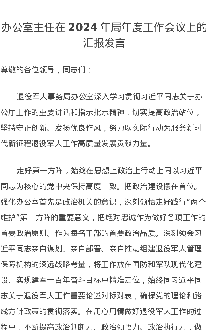 办公室主任在2024年局年度工作会议上的汇报发言