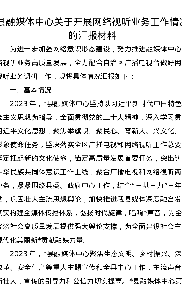 县融媒体中心关于开展网络视听业务工作情况的汇报材料