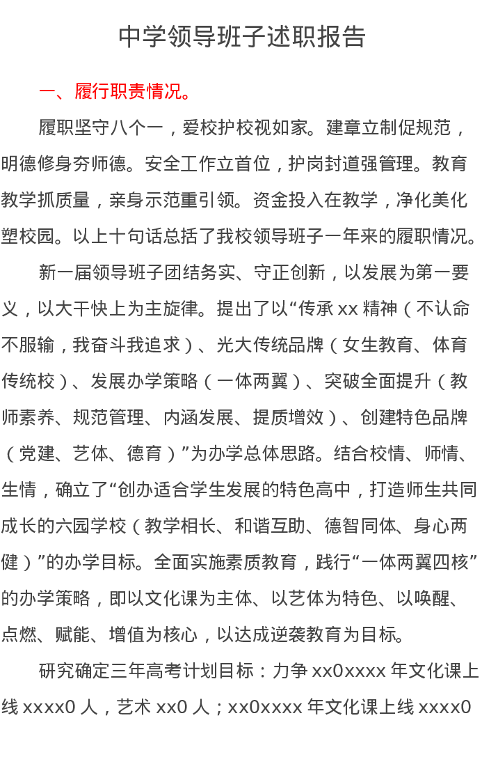 中学领导班子述职报告