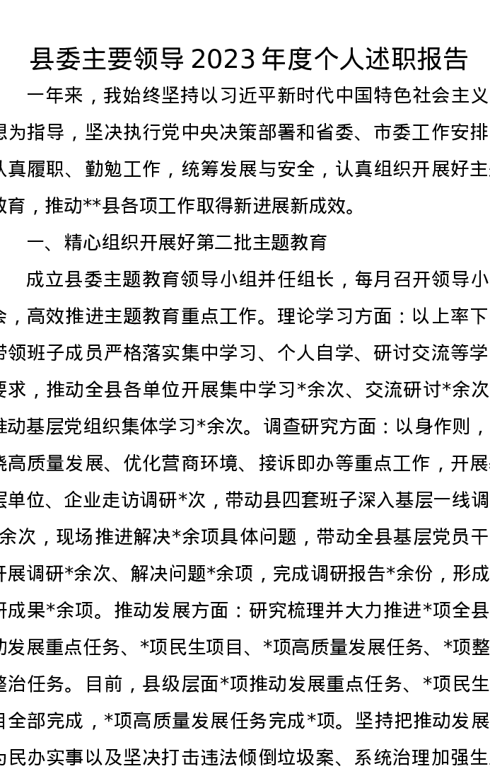 县委主要领导2023年度个人述职报告