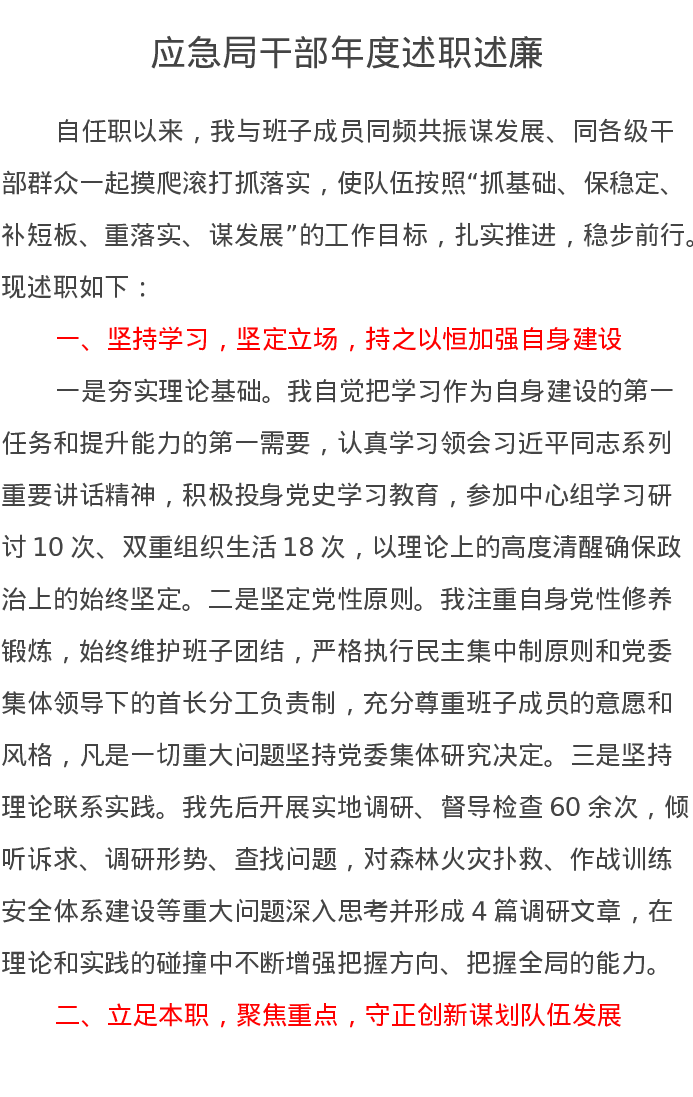 应急局干部年度述职述廉