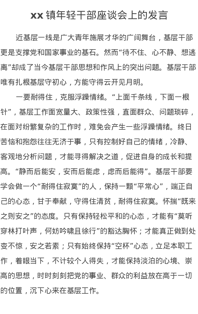 xx镇年轻干部座谈会上的发言