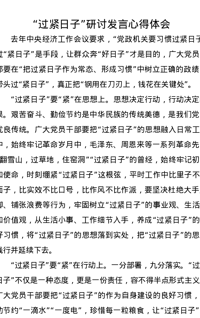 “过紧日子”研讨发言心得体会