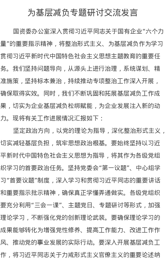 为基层减负专题研讨交流发言1