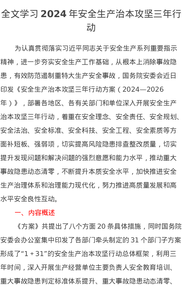 全文学习2024年安全生产治本攻坚三年行动讲稿