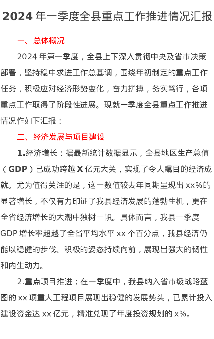 2024年一季度全县重点工作推进情况汇报
