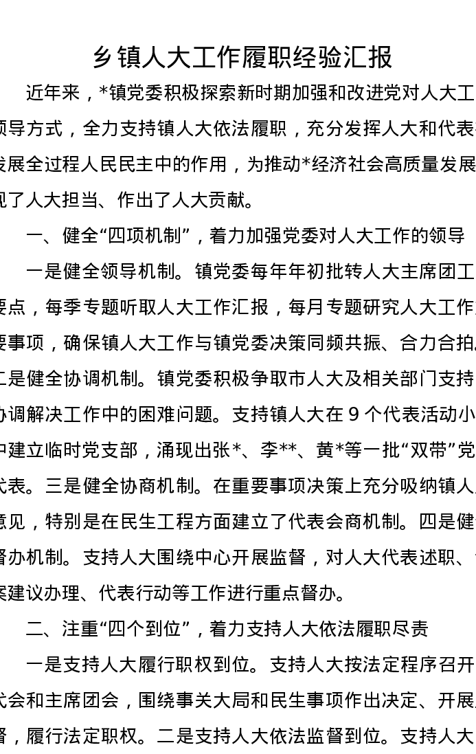 乡镇人大工作履职经验汇报
