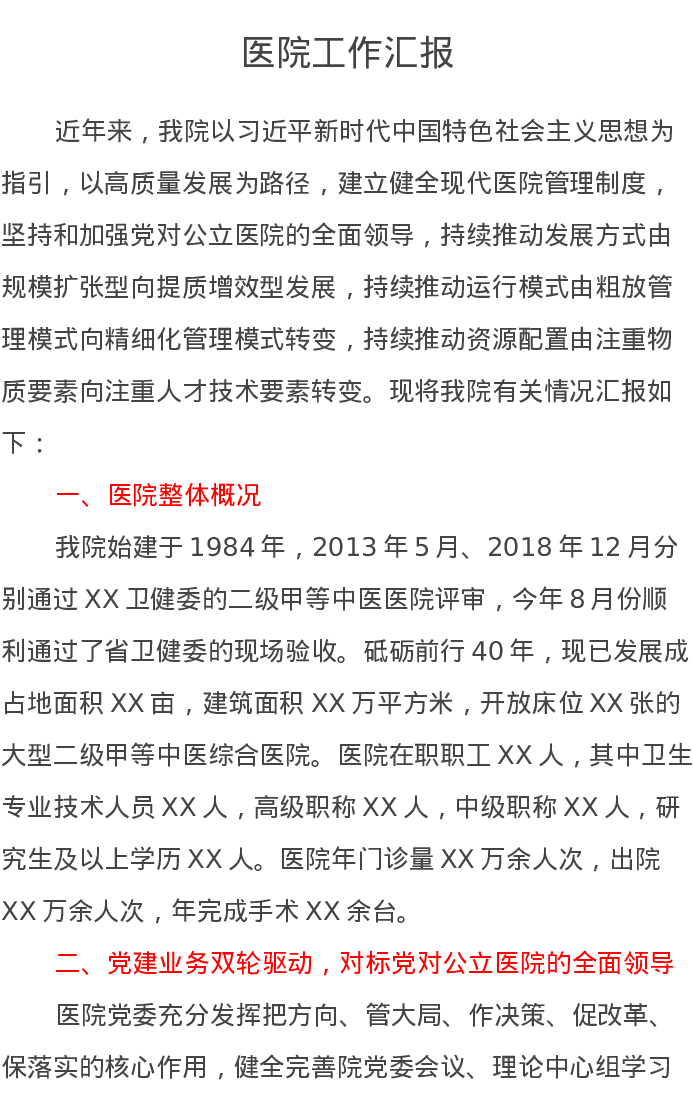 医院工作汇报