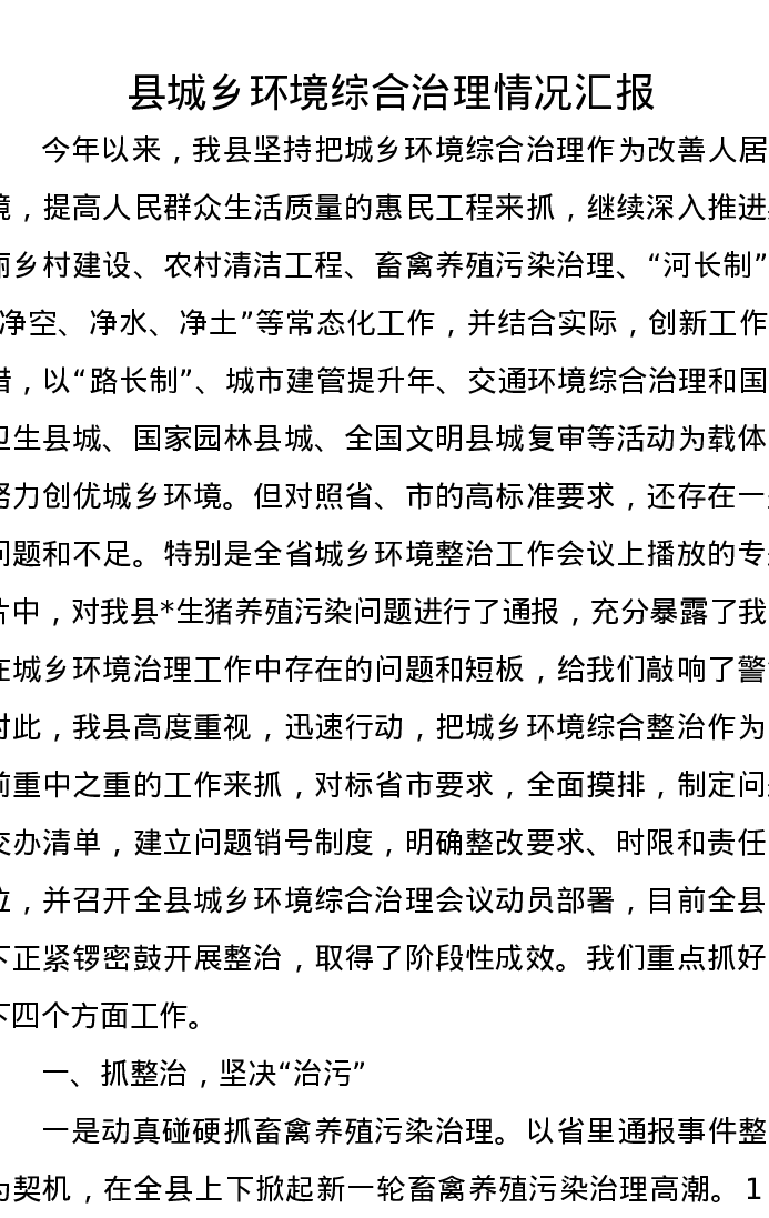 县城乡环境综合治理情况汇报