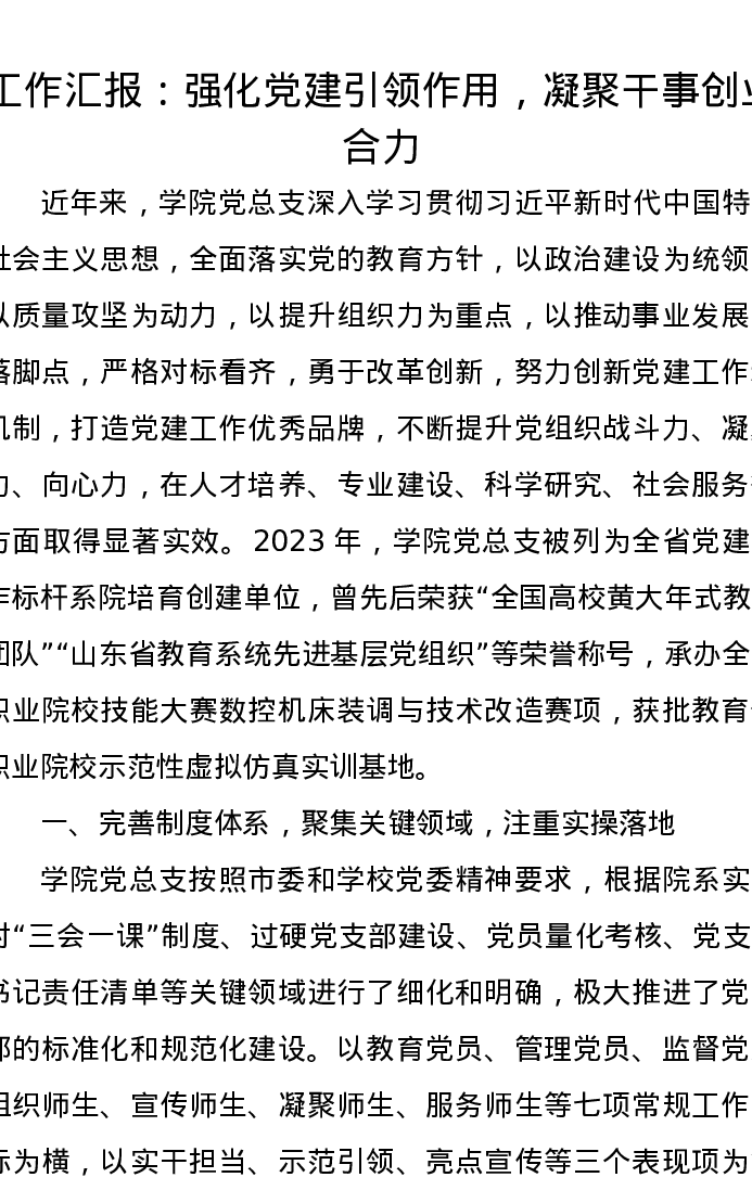 工作汇报:强化党建引领作用,凝聚干事创业合力