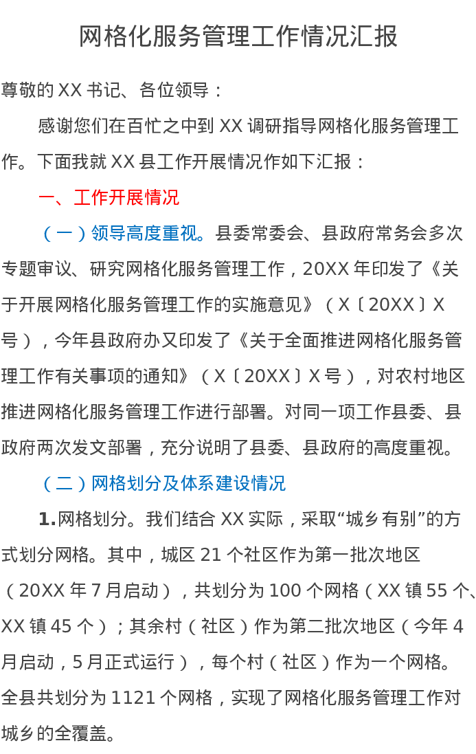 网格化服务管理工作情况汇报