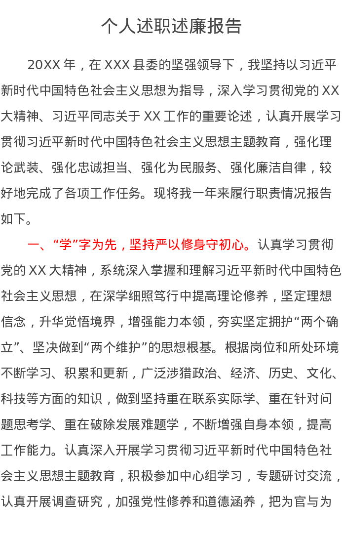 个人述职述廉报告
