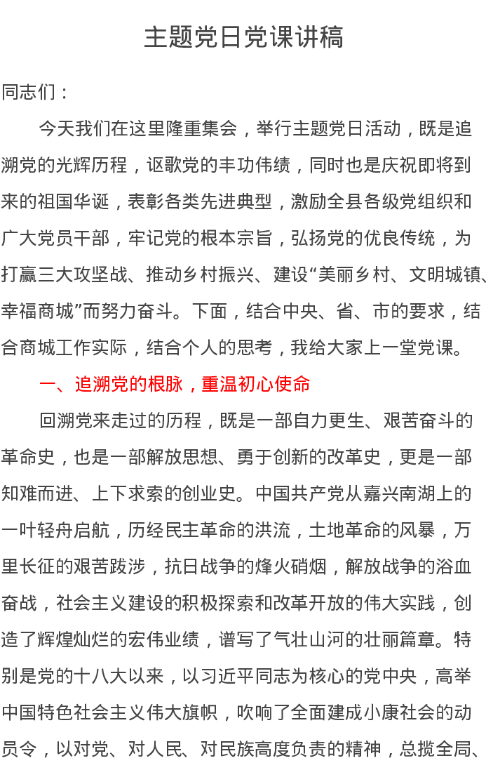 主题党日党课讲稿