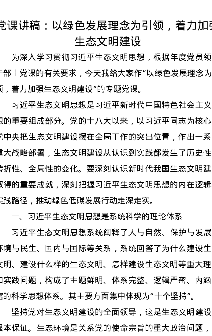 党课讲稿:以绿色发展理念为引领,着力加强生态文明建设