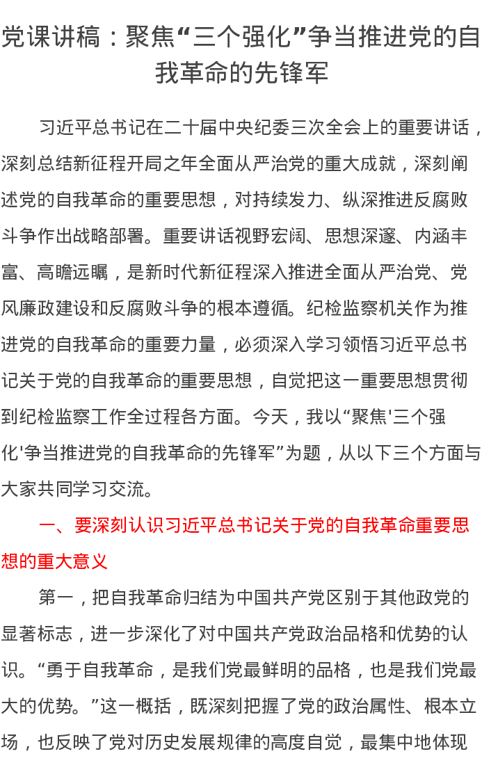 党课讲稿:聚焦“三个强化”争当推进党的自我革命的先锋军