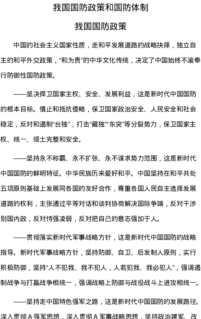 学校党课团课讲稿:国防教育之国防政策和国防体制