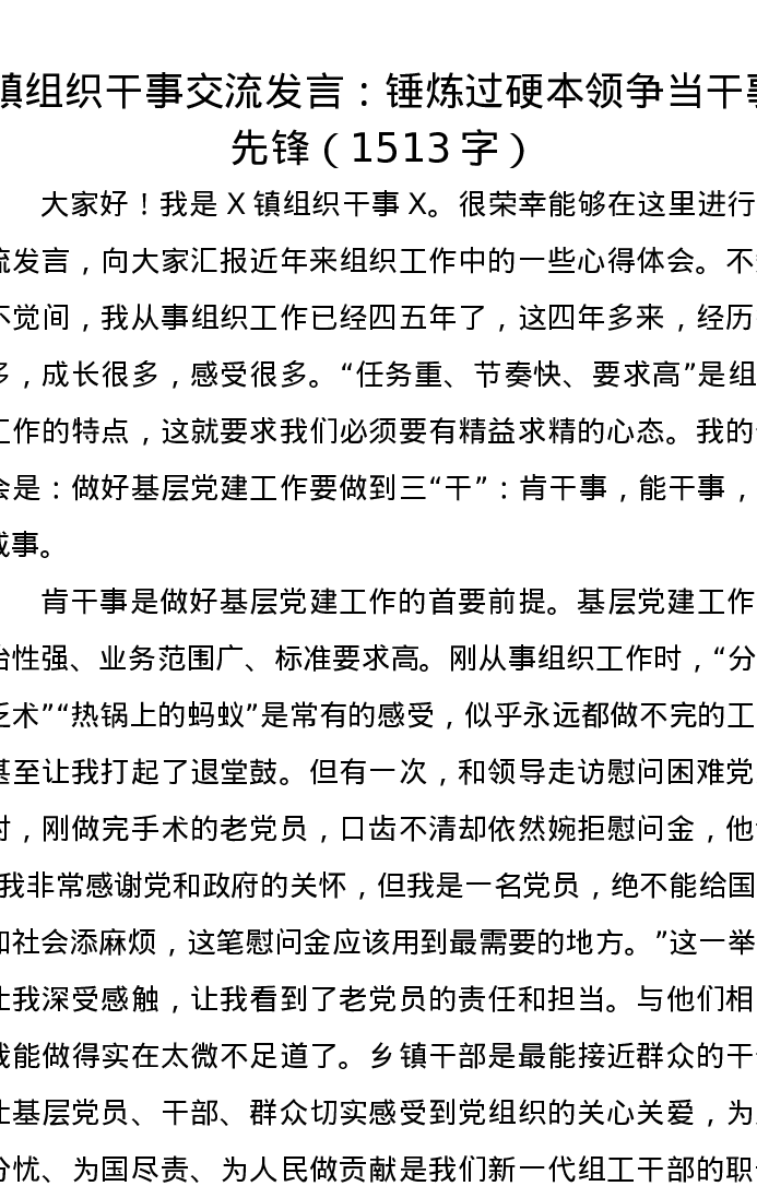 镇组织干事交流发言:锤炼过硬本领争当干事先锋