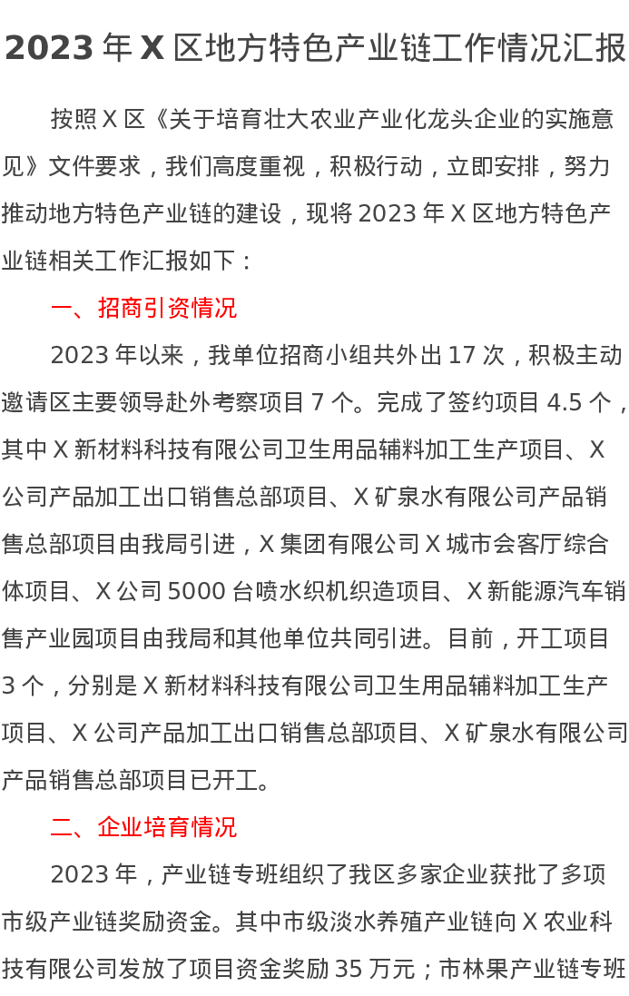 2023年X区地方特色产业链工作情况汇报