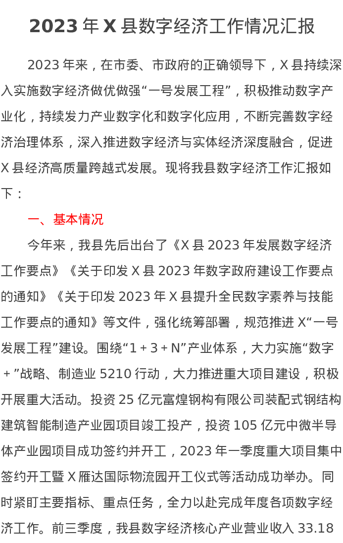 2023年X县数字经济工作情况汇报