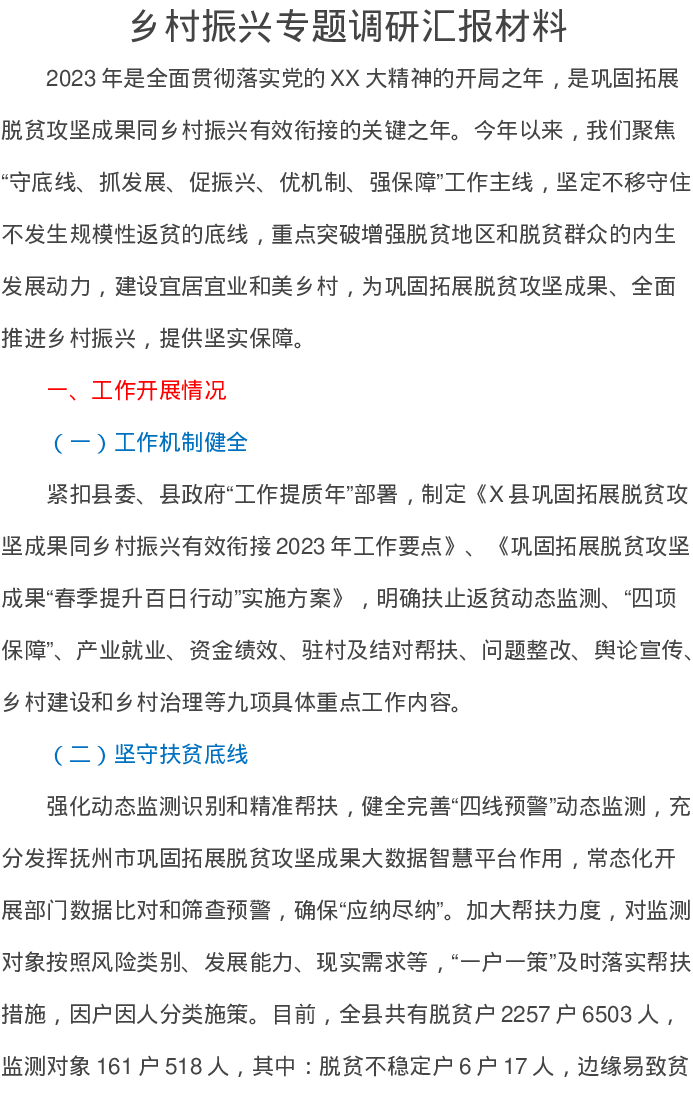 乡村振兴专题调研汇报材料
