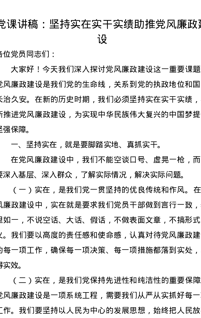 党课讲稿:坚持实在实干实绩助推党风廉政建设