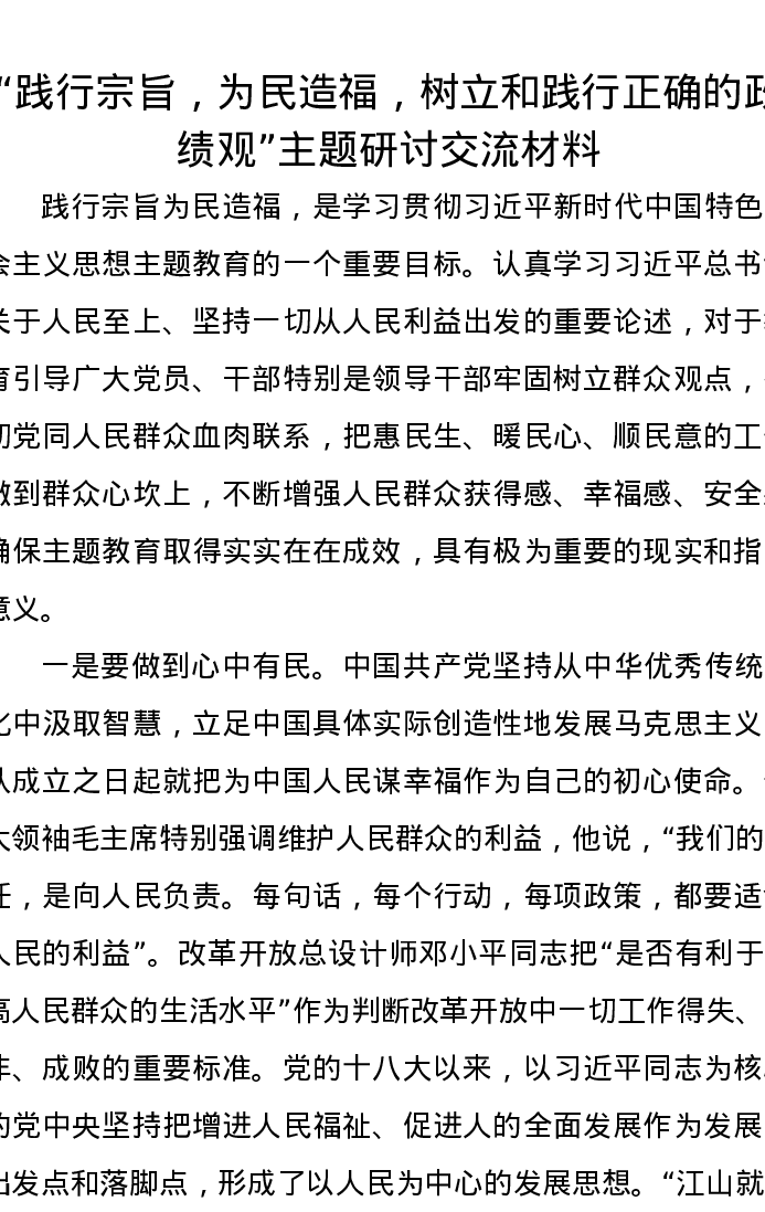 “践行宗旨,为民造福,树立和践行正确的政绩观”主题研讨交流材料