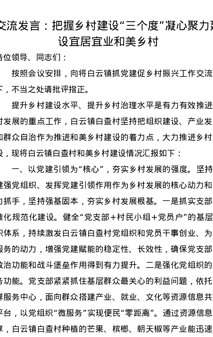 交流发言:把握乡村建设“三个度”凝心聚力建设宜居宜业和美乡村