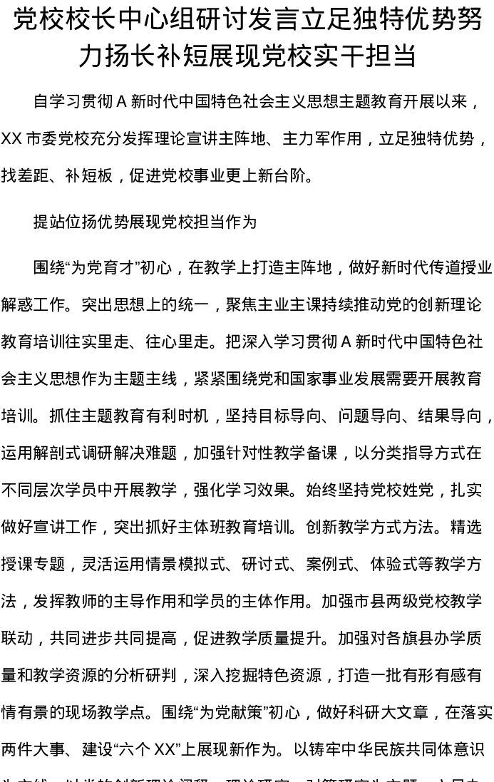 党校校长中心组研讨发言立足独特优势努力扬长补短展现党校实干担当