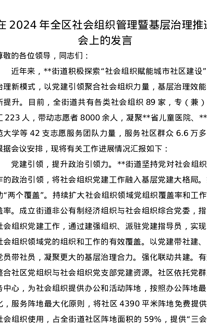 在2024年全区社会组织管理暨基层治理推进会上的发言