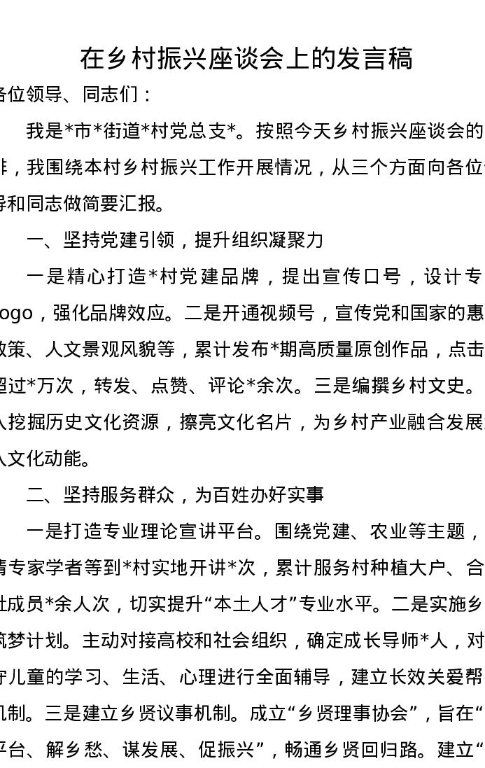在乡村振兴座谈会上的发言(村)